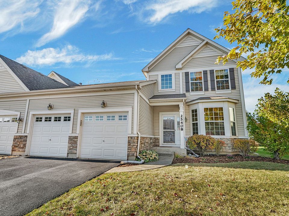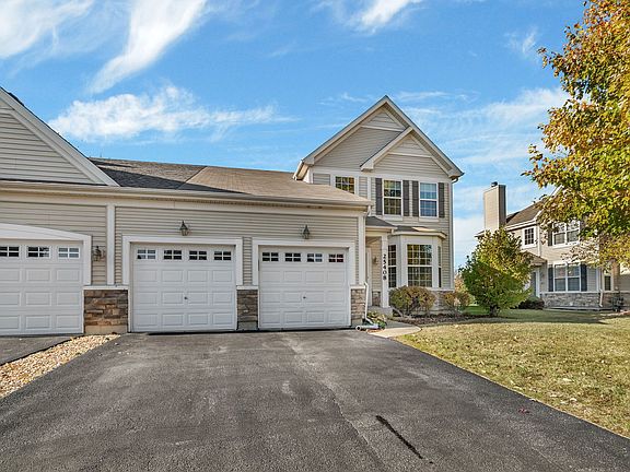 Spacious, Light-Filled Duplex with Private Backyard!  Welcome to this beautiful 3-bedroom, 2.5-bath duplex offering comfort, style, and space in every corner. Soaring 9-foot ceilings and abundant natural light create an airy, inviting atmosphere throughout.  The expansive kitchen is designed for both function and charm, featuring plentiful cabinetry, generous counter space, a casual breakfast bar, and a pantry. The dramatic two-story family room centers around a cozy fireplace and offers flexible space for both living and dining.  The main-level primary suite is a true retreat, complete with a spa-inspired bath boasting a separate shower, indulgent soaker tub, and a spacious walk-in closet. A convenient main-level laundry room includes extra storage and a dedicated closet for added organization.  Upstairs, an open staircase leads to a sunlit loft-ideal for a home office or reading nook-plus two additional bedrooms and a full bath. The full basement is ready for your personal touch, whether you envision a recreation room, gym, or extra storage.  Outside, enjoy a paver patio with a built-in firepit, surrounded by mature trees and open fields-no rear neighbors means enhanced privacy and serene views. A two-car attached garage completes the package with ample storage.  This home blends thoughtful design and everyday functionality for a truly exceptional living experience.