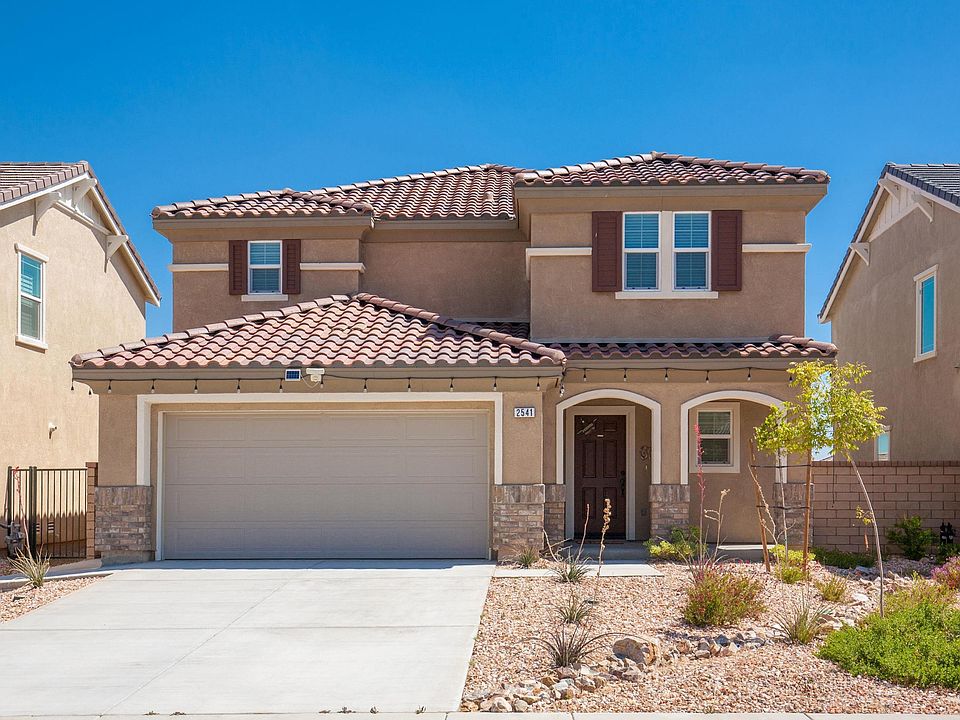 Stunning Anaverde (West Palmdale) Home For Rent. Home has been upgraded from floor to ceiling. Built in 2017 w/ 3 large bedrooms and 3 bathrooms. Beautiful wood flooring throughout. Chef's dream kitchen w/ a wrap round center island, breakfast bar, upgraded white cabinetry, and granite countertops. Oversized master bedroom w/ recessed lighting. Utility smart backyard w/ concrete wrap around patio and turf landscaping. Gym in garage. Rent at only $2,499 per month.