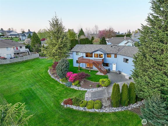 A move-in ready, well-maintained 3,343 sq. ft. daylight basement home with shed, on nearly half an acre in quiet cul-de-sac with NO HOA. There is room to add garden, greenhouse or ADU. 3-bedroom, 2.5-bath with living room and family room, office, and bonus room (possible 4th bedroom), along with in-house heated storage room with shelving. Laundry room and pantry off kitchen. Granite kitchen countertops, oak flooring and newer carpet. Back of house faces west with forest and pond views, migrating waterfowl, lovely sunsets. Landscaping includes mature blueberry bushes. House has a newer 50-year roof (2016), fresh exterior paint, new high-efficiency gas heater with A/C (2021), a Culligan water system in garage and Kohler back-up generator.