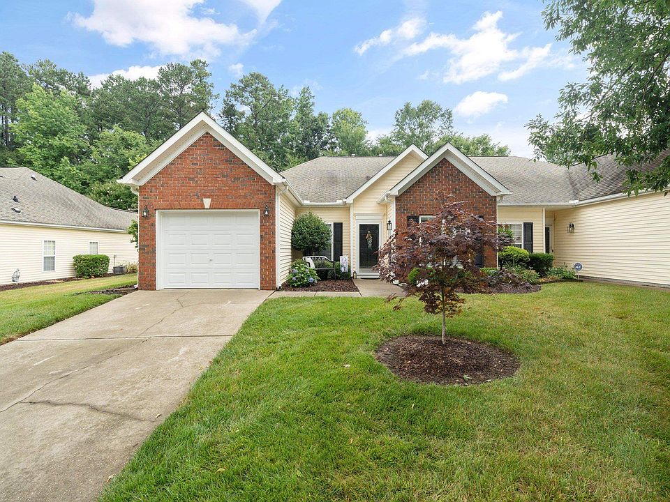 Enjoy low maintenance living in this RANCH townhome community tucked conveniently in Wakefield in North Raleigh. Three bedrooms and two full bathrooms on the main level in a end unit townhome is hard to find. The primary bedroom suite has a large en-suite bath with a gorgeous tile shower, two walk in closets and direct access to the SUNROOM. Generous closets in the remaining two bedrooms means you won't have any storage woes. The FENCED backyard is edged by a wooded area - offering privacy and a great space to unwind! HOA includes all exterior maintenance (siding and roof!), pest control, all lawn maintenance and access to the Villages clubhouse and pool! So much is within the community - grocery store, nail salon, pub, brewery, drug store and so much more to make life very convenient!