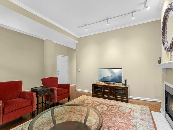 Cozy fireplaceTree-lined streetIn-unit laundryCrown moldingFormal dining areaHardwood floorsLarge private deck