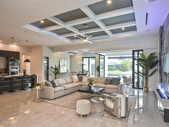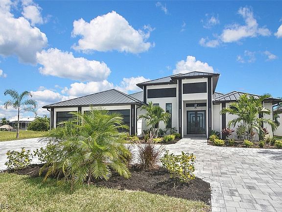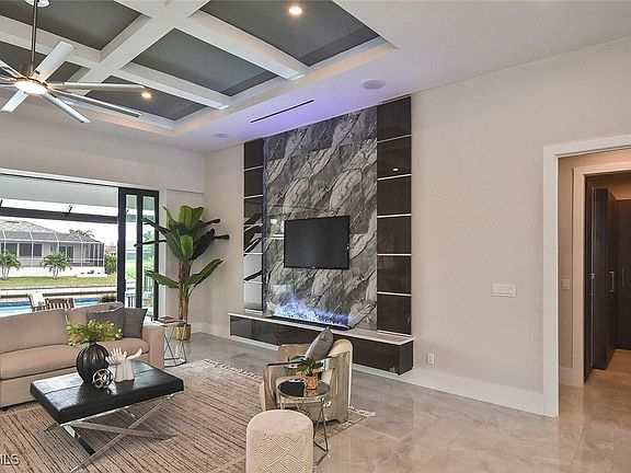 Welcome to this stunning NEW CONSTRUCTION GULF ACCESS HOME located at the most desirable Surfside Blvd. When you walk in you're being welcomed by a pristine porcelain floor and an open floor plan with a ballroom sieze living area. This home is the epitome of luxury and design, take a look at the very special water vapor fireplace and all high- end amazing light fixtures. There is an integrated blue tooth sound system with indoor and outdoor speakers. The office has this amazing luxury feel and warmth with very special wallpaper and tall impact windows. The well thought out designs of the XXL pool spa with infinite edge look will give you the waterfront Florida living style. We have a grey metal roof that will keep you and your family safe whatever happens. The outdoor kitchen has a black BBQ grill and black cabinets doors that will not rust as all the chrome ones do, the designer thought about everything to make this home stand out compared to anything else out there with all these high-end upgrades. The outdoor kitchen also has an outdoor refrigerator to keep your wine and beverages nice and cold right next to the pool. Take a look at the hidden walk-in kitchen pantry with a lot of extra storage space and a bar with another refrigerator. A luxury kitchen with top of the line appliances with Taj Mahal quartz countertop and waterfall edges it's a chefs dream kitchen. A separate wine cellar for 18 bottles. And ALL ASSESSMENTS are paid in full.