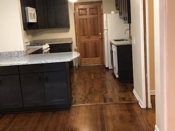 (3 ) bdrms / 2 full bath. Bathroom attached to master bedroom. Modern Kitchen with stone countertops, updated appliances, dishwasher, and microwave. Hardwood floors throughout. LOTS of closets space one (cedar). Plenty of Non- permitted street parking. Small Dogs. This is a must see !! Heat, water and trash pick up also included.