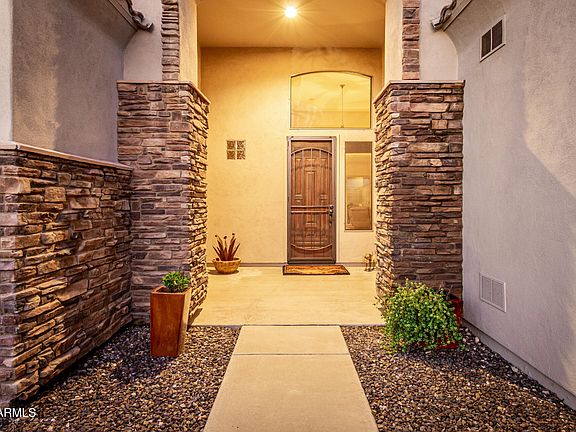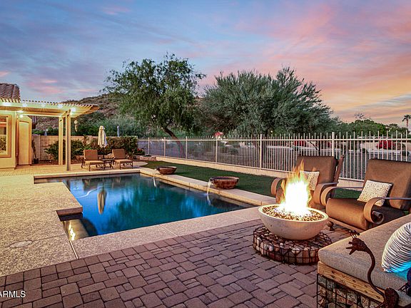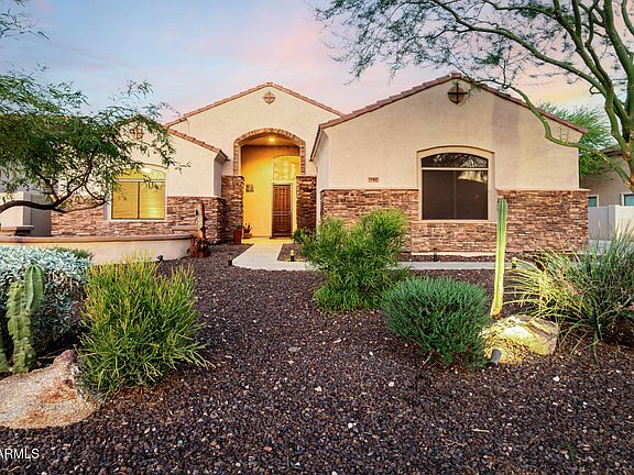 Stunning Stetson Valley Retreat with Mountain Views! This beautifully appointed home offers privacy with no neighbors directly behind & backyard oasis featuring a heated pool, pergola covered patio, custom paved grilling area, fire pit, scenic walkways & breathtaking mountain views. Inside, the open-concept kitchen flows into the dining & family room, ideal for entertaining. The split floorplan provides comfort with 3 beds, 2.5 baths, plus a versatile office/den that can convert to a 4th bedroom. The oversized primary suite includes a private exit, dual vanities, separate tub/shower & spacious walk-in closet. Enjoy quick access to hiking/biking trails & nearby Deem Hills Park & Recreation Area; shopping, dining, I-17, 101 & TSMC facility. A perfect blend of comfort, upgrades & lifestyle! The gourmet kitchen features granite counters, upgraded cabinetry, stainless appliances, gas cooktop, recessed lighting & spacious island opening to the family room with surround sound pre-wire. 2025 updates: exterior paint, AC replacement, engineered wood flooring, oversized sliding glass doors. Other upgrades: water heater, upgraded landscaping w/pavers & turf, garage/laundry cabinetry, and added driveway parking.