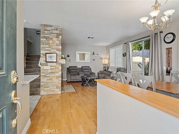 Come and see this beautiful two-story home nestled within the exclusive gated Oak Lane community of Santa Clarita. This home boasts a stunning kitchen with sleek quartz countertops and a stylish tile backsplash, perfect for those who love to cook and entertain. The living room is warm and inviting, featuring a stone fireplace and a built-in entertainment center, while the adjacent dining area is enhanced by a lovely chandelier. Downstairs, you'll find a convenient bathroom for guests. The oversized primary suite offers a ceiling fan, a spacious en-suite bathroom with a standing shower, a separate soaking tub, dual sinks, and a custom walk-in closet. There are three additional bedrooms, along with a hall bathroom featuring dual sinks and a shower/tub combo. Other notable features include upstrairs skylights letting in natural light, a newer HVAC system for year-round comfort, plantation shutters throughout, and a well-equipped laundry room with plenty of storage space. The direct access two-car garage includes an additional storage nook and overhead storage, and the private backyard offers beautiful hardscape, ideal for outdoor relaxation and entertaining. The Oak Lane community provides fantastic amenities such as controlled access, a pool, and a relaxing spa just to name a few. With close proximity to parks, dining, schools, and restaurants, this home offers the perfect balance of comfort and convenience. It's a must-see and a wonderful place to call home!
