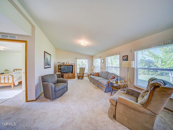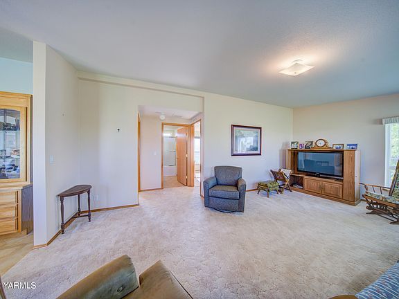 Clean 3 bed 2 bath manufactured home with attached 2 car garage features large formal living room with bay windows, gourmet kitchen with eating bar flowing into an open family room with lots of windows. Master suite with walk-in closet, full bath, and lots built in storages, throughout. Two additional bed and bath on opposite end of home. All on 2+ irrigated acre with a large fenced pasture for livestock. Shared driveway with 2541 (MLS 22-1807)