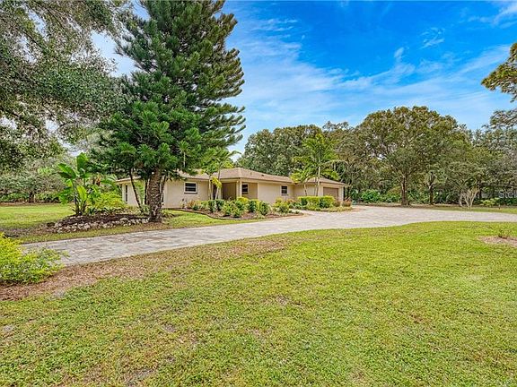 Your wait is over because this MOVE-IN READY MUST SEE 3 bed/3 bath/1 den home with an enormous 2.18 acre lot will not last long. With nearly $200,000 in renovations, enjoy the modern interior finishes and the great outdoors with a beautiful Pergola in the rear patio that is a perfect serene setting. Renovations include, Kitchen and Bath remodeled with granite countertops and Real Wood shaker cabinets, custom master closet, new interior doors, window treatments, HURRICANE impact windows and doors, recessed lighting, newly paved driveway and patio, new electric panel, water softener, newer flooring throughout, 2 newer HVAC units, garage floors. Ask for the full list. There are many fruit trees you can enjoy including star fruit, mango, jack fruit, kumquat, lemon, grapefruit, and oranges. With your own well and septic tank, this helps keep your utility bill (electric) low which averages $125/month for the year. Septic drain and well tank replaced in 2020; Well pump replaced in 2016. NO CDDs. Very conveniently located within minutes of shopping, activities, and everyday errands. Front load washer/dryer included. PLEASE CLICK ON THE VIRTUAL TOUR link and check out the VR TOUR with 360-view interactive photos which detailed view of each room and the exterior of the property.