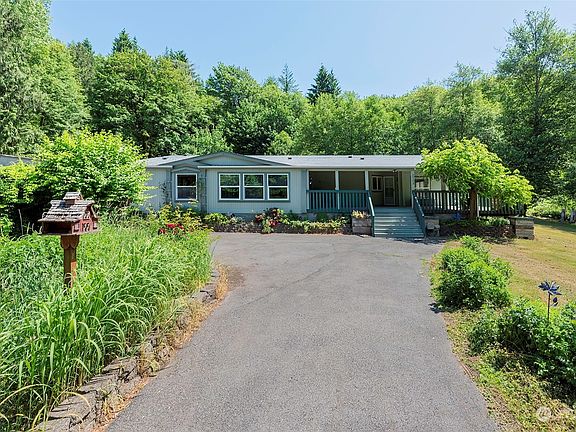PRIVATE 11+ Acres w/ Delameter Creek meandering thru your property. 1995 Triple-Wide, 3 bedroom, 2 bath, 2000+ SQ.FT w/Wrap Around Deck situated to take in the Creek views, sounds & wildlife. Home is Vaulted w/XXL Family Room, Kitchen w/Bar Seating, Living Room, Oversized Master En-Suite w/Walk in Closet, XL Primary Bath w/Tub & Step in Shower. Property is simply Amazing. Flat Acreage around Home w/Several Large Shops & Outbuildings...in original condition. Bridge across Creek to another Outbuilding. Established Gardens & Landscaping including Apples, Plum, Cherry, Pear Trees as well as Blueberries, Strawberries & More. 16 min (8.8 miles) off I-5