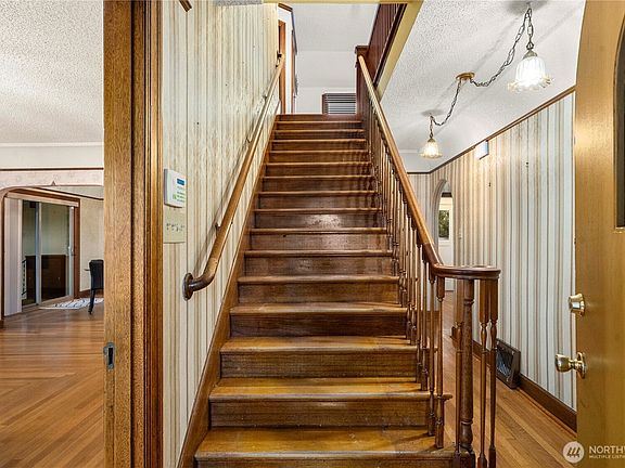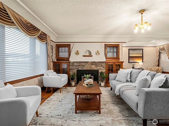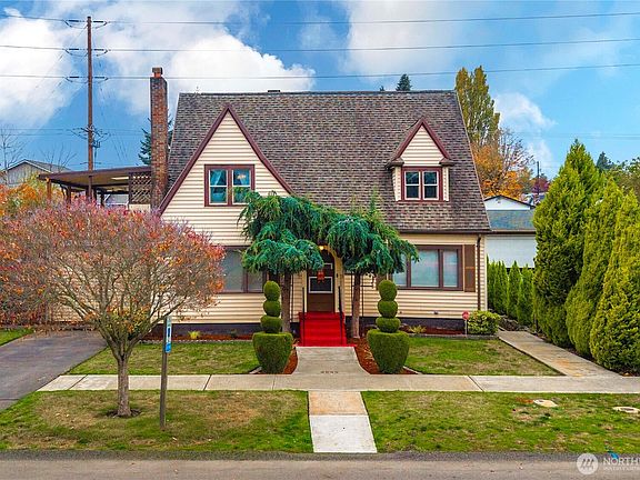 Step into timeless charm with this beautifully preserved 1929 Tudor Revival in Tacoma. Steep gables, arched doorways, and rich woodwork highlight the craftsmanship of a bygone era, while modern updates offer comfort and convenience. 5 bedroom, 2.5 bath in 3,818 sqft! Enjoy coved ceilings, a cozy fireplace, and inviting sunrooms filled with natural light. Original millwork and built-ins add warmth and character throughout. Full bar w/ample storage space in finished basement. Finished attic w/even more storage space. Nestled on a private, corner lot, this home provides tranquility with easy access to many city amenities. Thoughtful upgrades blend historic beauty with modern living. Explore the potential in ADU, DADU, STR, MTR with NO HOA!