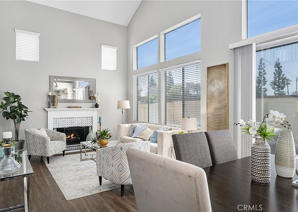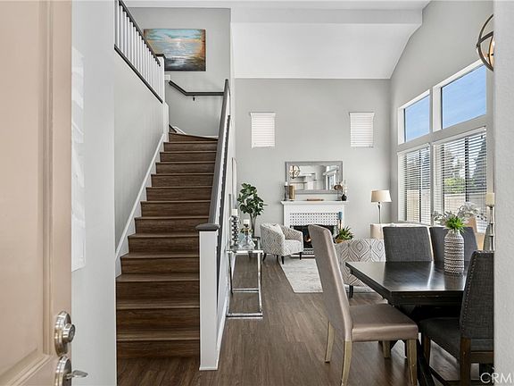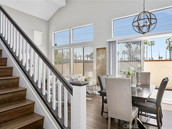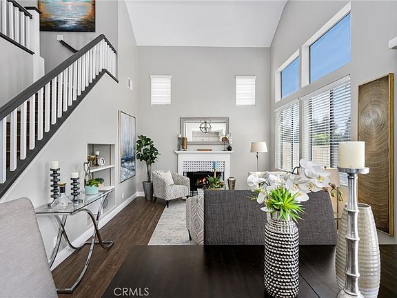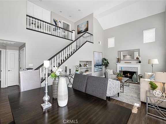 This Tustin Ranch home in Travilla is COMPLETELY DETACHED with no common walls and feels just like a single-family home! This gorgeously updated home has 3 bedrooms and 3 bathrooms with A FULL BATHROOM AND BEDROOM DOWNSTAIRS. The REMODELED KITCHEN has quartz countertops, white cabinetry, custom tile backsplash, a gas range, stainless-steel appliances, and opens to the SPACIOUS GREAT ROOM which is perfect for entertaining! The great room features cathedral ceilings, a stylish fireplace with a custom tile surround and custom woodwork and enjoys loads of natural light. Great floorplan with a sizable downstairs bedroom and full bathroom. Upstairs both updated bedrooms have ensuite remodeled bathrooms and lots of windows for natural light. Other features include ceiling fans in all of the bedrooms, recessed lighting and luxury vinyl flooring throughout the home– no carpet which is ideal for those with pets or allergies. The low maintenance backyard features both a concrete patio for relaxing, entertaining, or dining al fresco as well as an artificial grass area where kids or pets can play. Direct access 2-car garage. Tucked away on a quiet cul-de-sac with a HOA maintained greenbelt just outside your front door and no neighbor behind – this location is amazing! In addition, this move-in ready beauty is in walking distance to the Tustin/Irvine Marketplace which gives you convenient access to restaurants, movie theaters, stores, etc. There are also plenty of active outdoor activities nearby including Laurel Glen Park, bike trails, golf, hiking at Peters Canyon and so many more. This wonderful home is located in a superb school district and in the attendance area for these award-winning schools: Tustin Ranch Elementary, Pioneer Middle, and Beckman High! This very rare floorplan does not come on the market very often. Now is your chance – come see it today!