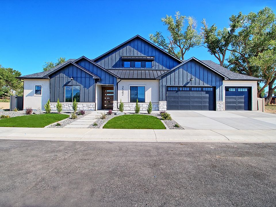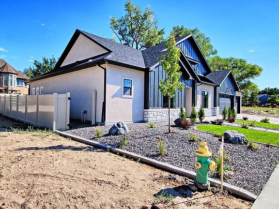 Brand new construction in one of Grand Junctions newest Aspen Valley Estate North Subdivision. This modern craftsmen style home is exceptionally designed with distinction, starting with a 5' solid wood pivot front door, with wide 10' ceiling foyer that leads you directly to the living room, with white stone gas fireplace accented by custom stained shelving. Living and dining room ceiling transitions to 10'6" tray ceiling with open concept to a jaw dropping kitchen featuring a 48" Zline gas range with black hood, accented by gold, along with Zline refrigerator, dishwasher, and built in microwave drawer, PLUS a wine cooler in a separate full length set of cabinets against the wall. All cabinets are Knotty Maple throughout the home. Large quartz island, designed for people who like to entertain, plus a walk-in pantry. Primary Suite also has a tray ceiling, lots of light, situated for privacy and has double vanities, stand alone tub, walk-in closet and walk-in shower with double shower heads. 4th bedroom has it's own 3/4 bath, so would work well for guest or in-law. Front yard is all landscaped and there is a 6' tan vinyl fence around the perimeter already installed. Now ready for immediate occupancy.