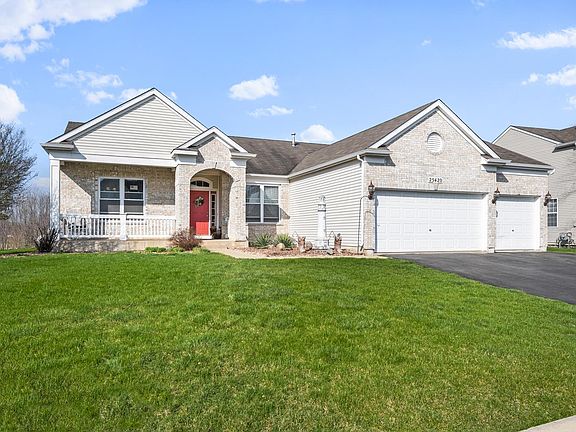 Any day is a beautiful day when your nestled amongst nature and situated on a pond. Enjoy gorgeous views from anywhere inside your 4 bedroom 2 full bath ranch home. Hardwood floors carry you from the open entryway into the home. Large family room with valuted ceilings, skylights, and large windows allow for an open and bright feel. Open concept kitchen with plenty of counter space and cabinets. A brand new and oversized sliding glass door leads you from the breakfast area to your TREK deck. Master bedroom with attached suite has double sinks, separate shower and soaker tub, as well as a walk-in closet! Two additional bedrooms and a full bath make up the remainder of the first floor. Open staircase leads you to your FULL basement with rough-in plumbing for that future bath! Already partially finished you will find the large fourth bedroom with an oversized closet. Part of the acclaimed Lincoln Way High School District and close to Metra Station. New Windows 2019, gas line run outside for grill, brand new carpet.