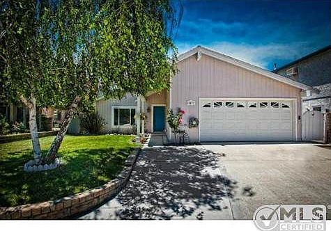 This STUNNING single story home is in the heart of Valencia on a quiet cul-de-sac. Enter the home and be amazed by the front room with its eye catching fireplace and built in cabinetry. The light and bright kitchen has loads of counter space, a pantry, refinished cabinets, stainless steel appliances, granite counter tops and breakfast bar seating. The bathrooms have been gorgeously remodeled with function and beautiful design. The backyard is built for relaxing with a roofed patio cover, lots of grass for play, and a dog run at the side of the home. There is storage galore in this home with all the closets having organizers installed, a garage that has cabinets throughout and a pull down ladder for additional attic storage. The drywalled garage with its epoxy flooring is equipped with an additional refrigerator and is another wonderful room addition of the home. The house includes upgraded flooring throughout, dual pane windows, copper re-pipe, newer HVAC system, and a tankless water heater. This 4 bedroom charming home is perfectly located within walking distance to the paseo/walkways, shopping, beautiful parks and award winning schools. This heart of Valencia home has curb appeal galore and will not last long!