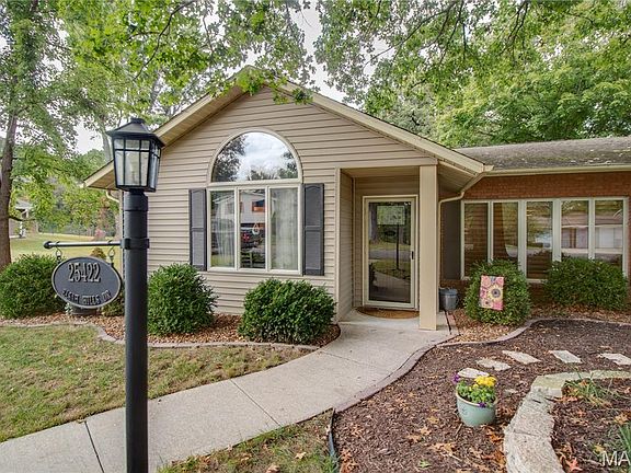 Immaculate Home with Mid-Century Modern Flair in Elsah Hills! This remodeled 3-bed, 2-bath quad-level home in the Elsah Hills neighborhood blends timeless mid-century modern design with thoughtful modern updates such as vaulted ceilings on the main level, solid wood interior doors, & gleaming hardwood floors. The open-concept kitchen offers generous cabinet space & flows easily into the main living area. The living room features a cozy gas fireplace, plantation shutters, & stunning natural light, while the spacious family room on the lower level offers a built-in electric fireplace, custom blinds, & heated floors. Enjoy two screened-in porches, one off the primary bedroom & one off the family room, both with ceiling fans—plus an expansive 20’x20’ covered patio with skylights & ceiling fans, located just off the living room. Relax in your private backyard oasis. Additional features include: Wet bar, 2-zone central a/c, Full-house 15 kW Generac generator, Heated floors in family room & lower-level bathroom, Sump pump, Norweco septic system, Detached custom-built 16’ x 12’ shed with electric, electric available at the parking pad for RV plug in, & tons of storage throughout. Recent updates include: Roof (2015), Gas furnace (2016), Water heater (2019). Set on a beautifully landscaped lot that backs up to serene woods, this home combines privacy, character, & modern comfort. The 2-car built-in garage adds convenience with plenty of parking in driveway. Schedule your showing today!
