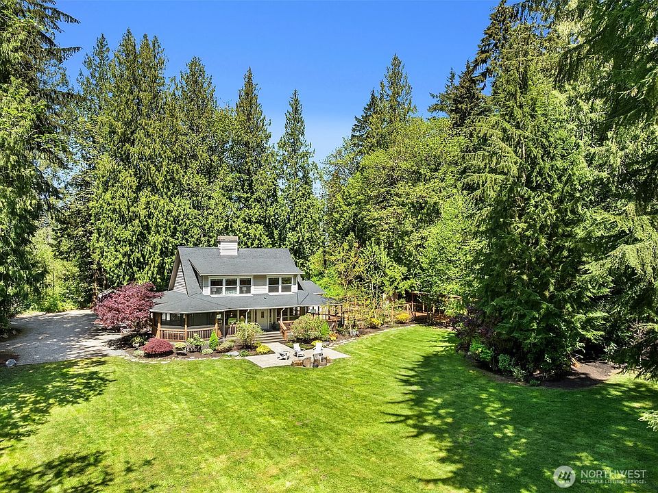 Welcome home to this charming, updated custom craftsman on a serene & private 5 acres. This one has it all! Main floor features hardwoods, gas FP, large windows in every room & beautiful kitchen. Second floor has 2 bedrooms & full bath plus the primary suite w/gas FP, large walk-in closet & primary bath. The detached 2 car garage boasts large bonus room perfect for home gym, office or media room! Outdoor living is at its finest w/a covered wrap-around porch, hot tub, patio w/professional stone fire pit, lush green grass, fenced garden beds, chicken coop & more all surrounded by trees for the utmost privacy. Systems include Tankless water heater, AC mini-splits, whole house fan, Nest thermostat, & its wired for a generator. Don't miss this!