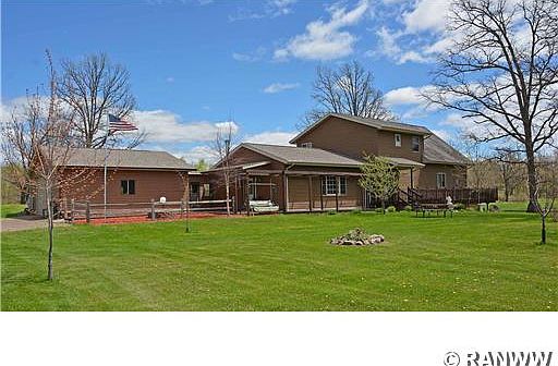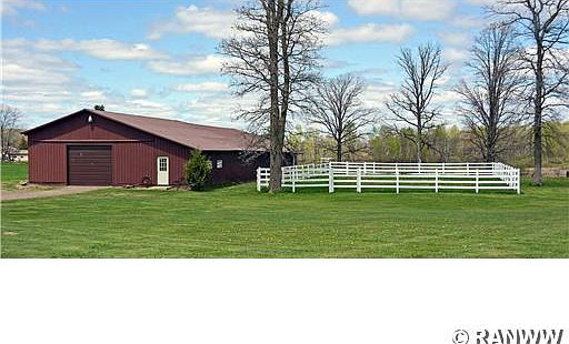 Imagine waking up every morning to incredible country views & your private pond from this gorgeous walkout home on 40 ac!3 BR maint. free home completely set up for animals! 42x116 pole shed w/4 box stalls, 56x100 fenced in riding area, 11 acres of hay. Open concept, Main Flr BR w/walk in closet, MBR suite w/huge walk in closet, soaking tub, in floor ht in bsmt & LR, wd clgs, rec. lighting, French drs, 2 FP, AC runs off geotherm, tiled shower, flr to clg windows, shingles- 2010, water htr-2011.