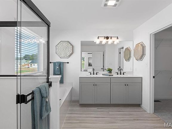 DISPLAY FOR SALE! New McBride Homes Royal II 2-story, 4BR 2.5BA available NOW! Luxury kitchen w/level 5 Burlap 42” cabinets, lg island w/breakfast bar, quartz countertops, matte black GE appliances, crown molding & corner walkin pantry. Breakfast rm opens to backyard w/sliding glass door. Main level has a large family rm w/ceiling fan, formal dining w/coffered ceiling, laundry, powder rm & open spindled staircase to the 2nd floor. Master suite w/recessed lighting, ceiling fan, walk-in closet & private bath w/double vanity, tub, enclosed toilet & walk-in shower. 3 additional bedrooms with ceiling fans & hall bath. Upgraded lighting/plumbing fixtures, garage coachlights & ¾ bath rough-in in LL. Polo Grounds offers a barn-style clubhouse, playground, pickleball court, scenic lake w/fountain & more. Located in Eureka near Highway 109/Hwy FF, in the Rockwood School District. Enjoy peace of mind w/McBride Homes’ 10 year builders warranty & incredible customer service! Display photos shown.
