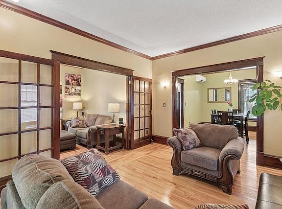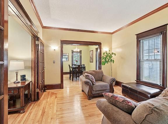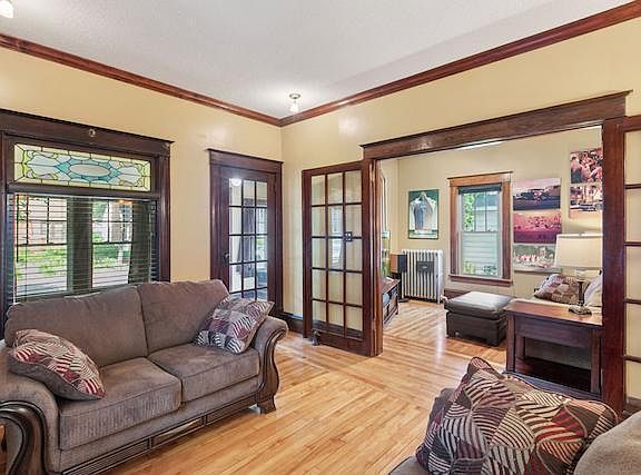 As soon as you step Inside this home, you'll see and feel the pride in ownership from the seller's past 30+ years. The home has been maintained and kept in great condition. The charm of the beautiful woodwork throughout the home beams through the hardwood flooring, archways and crown molding. MAIN level offers many things including the Living Room accented by the perfect amount of stained glass. The adjoining formal Dining Room separates the Living Room and spacious Kitchen. The main floor Bedroom features French doors and offers flexibility to be used as an Office or Study. Extending the livability of the main floor are the large 17x7 Front Porch that can get soaked with sunlight PLUS the oversized Mud Room/Back Porch that leads to the comfy back yard. UPPER level includes the other 2 Bedrooms, with the primary that includes an additional 11x7 sitting room. The Full Bathroom includes shower/sitting tub and nice tile flooring. The very recently remodeled wrap around Lower Level features another Family Room with a sit-up Bar and great flexibility with an egress window. You'll also find a newly added 3/4 Bathroom as well as a separate, clean Laundry Room. Once you step Outside to the private back patio, you'll see a few significant bonuses that are unique to the area. First, the large 3-car garage will be perfect for those with multiple cars and/or looking for extra space for their toys. PLUS, you have even more storage space in the Shed that's nicely out of the way in the yard. Lastly, enjoy the lack of activity with NO ALLEYWAY behind you on this property! The ductless mini-split system keeps you super comfortable and with some extra money in your pocket every month with its incredible efficiency. There is so much to love about this home and property... you'll surely understand when you walk through it yourself.