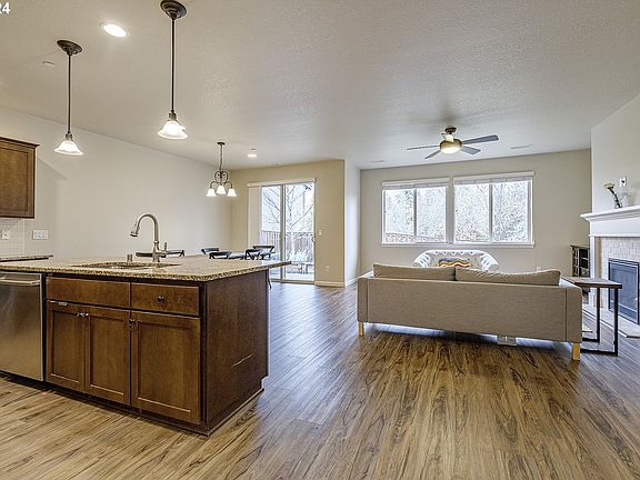 Experience the perfect blend of comfort and convenience with this one-level home, nestled in a peaceful cul-de-sac and backing to wetlands. This open-concept floor plan offers 1,958 square feet of thoughtfully designed living space, wide hallways, and featuring 4 bedrooms (or 3 plus a home office) with 2 bathrooms. Kitchen includes granite countertops, stainless steel appliances, and luxury vinyl plank flooring that extends throughout the main living areas. Additional interior highlights include window coverings, a gas fireplace, a tankless water heater, and forced air/central air conditioning for year-round comfort. Backyard with irrigation, complete fencing with a gate for privacy, and a low-maintenance design that’s perfect for relaxation or entertaining. Conveniently located close to schools and amenities.