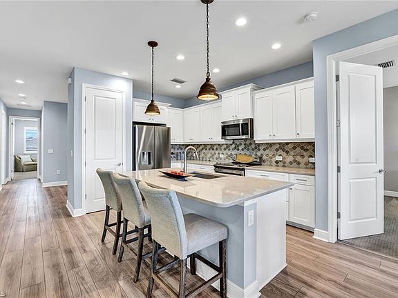 Western exposureOutdoor gas grillOpen-concept windemere floor planFire pitPlantation shuttersContemporary white quartz countertopsDesigner backsplash