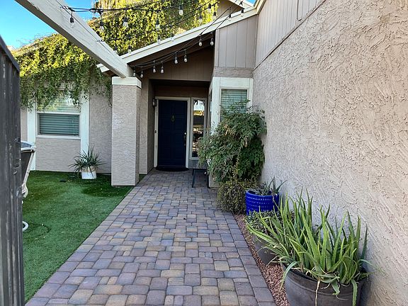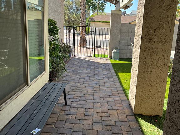 Inside you will find a large open living space with vaulted ceilings 2 bedrooms with a King & Queen Casper mattress and of course 2 baths. The hall bath has tub/shower combo the master bath is shower only. The 2nd bedroom also doubles as an office but the desk & chair could easily be moved to the living room. This home is great for a couple or roommates. We cannot allow children at this property due to the pool not having a pool fence around it. The pool deck has just been redone as well as new pavers in the front and side patio. Backyard is very private.