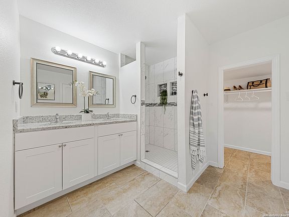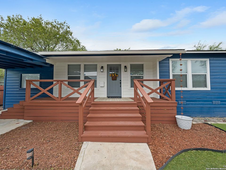 Great and affordable neighborhood in North Central San Antonio with quick access to downtown, The Pearl, The Quarry, Woodlawn lake, I-10 and 410. Inside, discover a modern kitchen with granite countertops, stainless-steel appliances, refreshed bathrooms, and elegant finishes throughout. A converted garage for additional living space. The primary suite offers a true retreat with a double vanity and separate his-and-her closets. Outside, updated exterior creates stunning curb appeal, while covered decks at both the front and back invite you to relax and enjoy the nice flat large yard and covered patio that can accommodate large gatherings. A small garden ready space awaits your personal touch perfect for adding your own vegetables or seasonal blooms. The lot is deep with alley access in the back, so there's plenty of opportunity to build an additional structure as well.