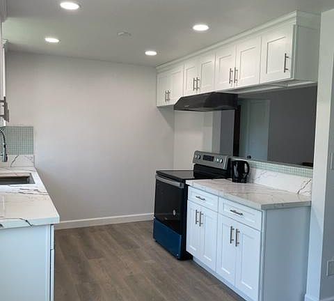 Beautiful and spacious 3Br, 2 Ba, recess lighting throughout , vinyl wood flooring, mirror closet doors in 2 bedrooms, newer white kitchen cabinets, granite countertops, furnished electric stove, stainless steel stove hood and kitchen sink, wall AC unit in living room, newer dual pane windows, fireplace in living room, 2 car garage. A must see it will not last! Call Flor Mendez to schedule an appointment. Owner pays for water. Renter responsible for electric bill. No smoking allowed. Street parking or in 2 car garage.