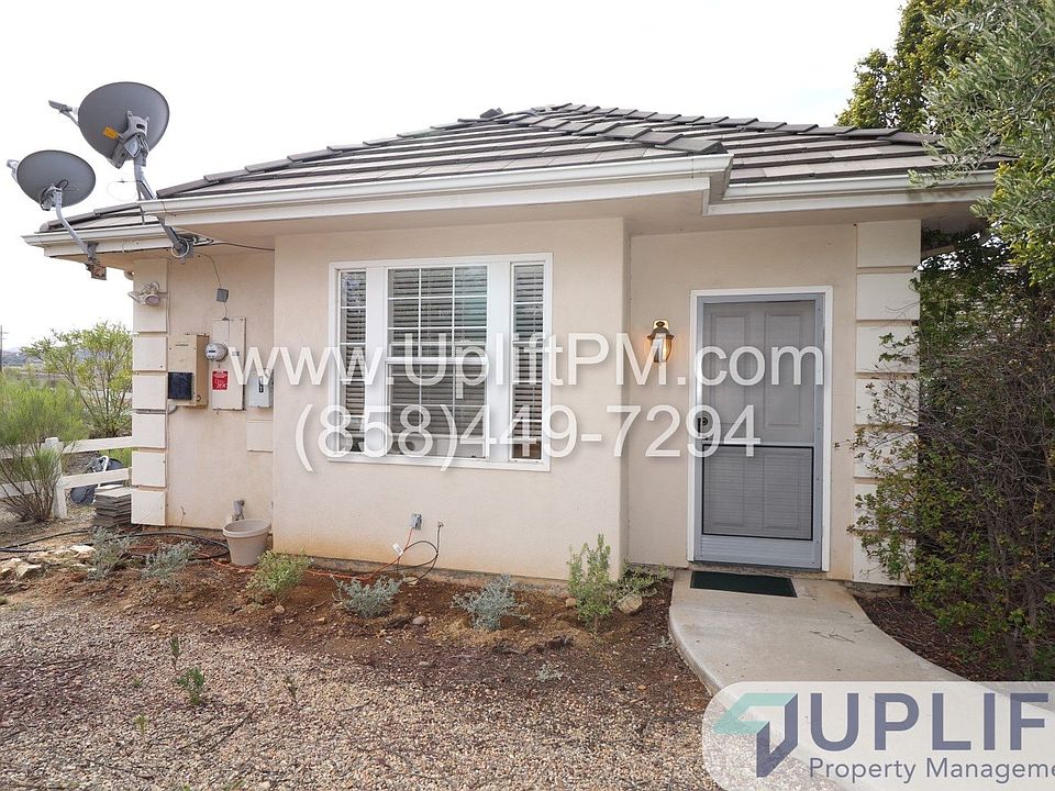 PLEASE READ ENTIRE DESCRIPTION BEFORE CALLING This 1 bedroom, 1 bathroom apartment is available soon. The property is located southeast of the San Diego Country Estates near Four Corners. The apartment is attached to a garage and separate from other units. There are other houses on the property that are occupied. In front of the apartment, there are trees and a fence that add privacy from the neighbors. Inside the home, there are tile floors in the living room, kitchen and bathroom with carpet in the bedroom. Kitchen appliances included are the stove, refrigerator, and microwave. There is a window A/C unit in living room and forced air heating. Ceiling fans are in the living room and bedroom. Laundry machines are in the attached garage for resident to use. The front driveway is gated from the street and there is one uncovered parking space for the unit with additional parking space for guests. UNIT INFORMATION: Lease: 1-year lease term to start. The Landlord will be the property manager; not Uplift Property Management. Utilities: All utilities are included with rent. Parking/Storage: One assigned parking space in front of the unit. An extra parking space is available for a guest to use. HVAC: Forced air heating and a window AC unit is set up in the living room. Laundry: Laundry in the garage for the residents to use. Pet Policy: No dogs. Small pet allowed upon approval. $75 first pet, $50 each additional increased rent per month. Please visit our website to view all the units, information, and the links referenced below. SHOWINGS: Add your name to the waitlist to be notified of a date and time available for a self-guided walkthrough TO APPLY: All our applications are done online through our company website. Be sure to pay the $40 application fee when applying. Each person planning to live here that is over the age of 18 MUST submit an application for approval. REQUIREMENTS TO RENT: 1. Minimum household gross income of 2.8x the monthly rent. 2. A good credit score and clean history (625 minimum). 3. Proof of income to be able to rent. Income can include assistance such as food stamps, child support - call for clarification if necessary. 4. A Social Security Number (SSN) or Individual Taxpayer Identification Number (ITIN). 5. Valid, current, government issued Photo ID. All Uplift Property Management residents are enrolled in the Resident Benefits Package (RBP) for $45.95/month which includes liability insurance, fee forgiveness, HVAC air filter delivery (for applicable properties), our best-in-class resident rewards program and much more! More details upon application. $40 Application fee is NOT refundable. Units are rented to the best qualified applicant when assessed using the requirements to rent. Conditional approval may be possible for people that do not meet all requirements. Applicants that do not meet all requirements will be subordinate to fully qualified applicants. Uplift Property Management CA DRE License #01902511