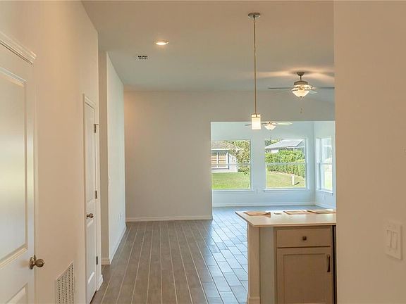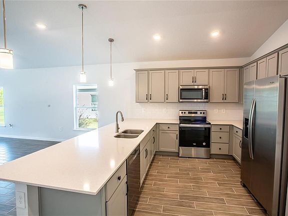 Short Sale. ***New construction, no wait, move in ready!*** Elevate your lifestyle with the opulence of the Sanibel II floorplan presented by Carpenter Homes a masterpiece within the Florida Living Series, certified by the Florida Green Building Coalition (FGBC). This one-story residence features 4 bedroom and 2 full bathrooms! As you enter, a beautiful kitchen welcomes you, with an expansive, oversized island that seamlessly flows into the living and dining area, the finesse of soft-close 36" cabinets and upgraded Blanco Matrix quartz countertops. Pristine SoHo 3x6 subway tile kitchen backsplash. An upgraded plumbing package featuring a Moen Sleek spot resistant stainless steel kitchen faucet and garbage disposal. Equipped with sleek stainless steel energy efficient appliances. This home exudes sophistication with a vaulted ceiling that unveils a spacious Florida Room creating an indoor-outdoor haven. Additionally, Carpenter Homes provides an upgraded brushed nickel lighting package including pendants over the kitchen island, and vanity fixtures in both bathrooms, gorgeously accenting the overall lighting design. Ceiling fans, complete with brushed pewter finish in each bedroom as well as the great room to help circulate air flow and keep you cool in the Florida weather. Complimenting the expansive living area is Glen Arbor 6x26 ceramic plank flooring. The Owner's suite is a sanctuary of indulgence, showcasing dual sinks, impeccably tiled Magnisi 8x12 white walls in the shower, and a generously sized walk-in closet. The home boasts Magnisi 8x12 white upgraded tiled walls in in the second bath/shower, a Blanco Matrix quartz vanity, and Moen Genta LX chrome faucets and shower/tub trim kits. The ampleness of this home continues with a utility room, and cutting-edge additions such as energy-efficient R-4.1 insulation on concrete exterior walls, Taexx tubes for pest control, and fabric hurricane shutters for every window. The meticulously landscaped yard is complemented by a state-of-the-art irrigation system with a rain sensor to help maximize efficiency. The expansive 3-car garage, complete with two garage door openers and four remotes, not only provides ample space for your everyday needs but also ensures the utmost convenience and versatility for all your storage and parking requirements. Step into a world where extravagance meets eco-conscious living your luxurious home awaits, a testament to timeless elegance and modern sustainability. Available to view any time.