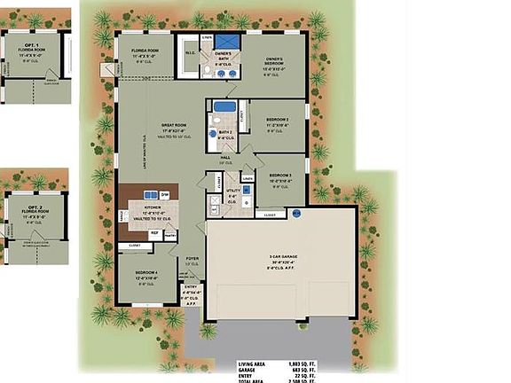 Expansive oversized islandCeiling fansSpacious florida roomBeautiful kitchenVaulted ceilingBlanco matrix quartz vanityDual sinks
