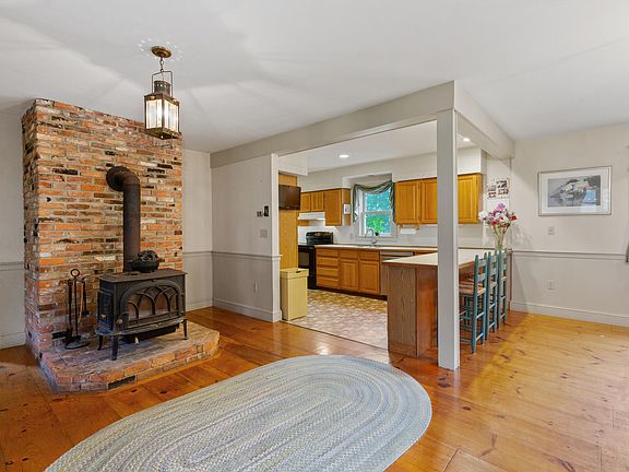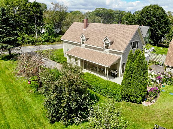 Looking for a place to work from home? Have a home business without it being in your home? Have you always wanted to explore your artistic side? And how about a place that is a short walk to the grocery store, the post office, the hardware store and even closer to the ice cream stand? Where the beach and the harbor are a short bike ride away? This wonderful New Harbor village home and gallery may be just what you've been looking for. Feel the welcome of home every time you walk along the covered porch and into the warmth of the large open kitchen and dining room combination with a wood stove on a brick hearth where you can dry your mittens. Entertaining? There is space for a large dining table with room for all the guests to sit while you put the finishing touches on dinner. A cozy front parlor is just down the hall if you want a quiet space. Just off the kitchen is a full bath, laundry area and big closet for storage. Walk up the back steps to the bedroom suite with a vaulted ceiling and large windows that catch the morning sun and look out over the back gardens. From the bedroom step into the hallway/office with its clever use of space. If you don't need an office it would make a great library or playroom. There are two more bedrooms just off the hall and landing at the top of the stairs in the front of the house. The gambrel roof gallery offers many possibilities with lots of open space on 2 floors. Easily converted to the garage it was originally designed to be with room for more than two cars and still space left over for a workshop in the back and an artist's studio with large windows to make it bright even on a foggy day. If you need even more work space, that can be accommodated with a backroom to the studio with large windows that look out over the lawn and the beautifully kept mature flower gardens. Other features include a driveway on either side of the house and a traditional covered porch where you can sit and watch fireflies flitter across the field.