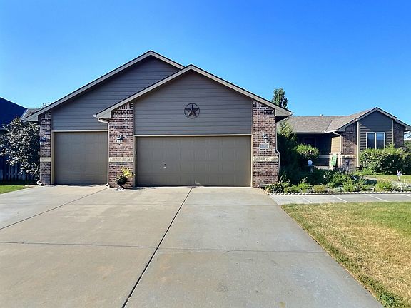 Beautifully landscaped Goddard home available for sale - This is a 3 bedroom 2 bath with plenty of outside entertaining space, including covered patio area and large backyard. This home has a 4-car tandem garage with additional storage all around. The kitchen area is an entertainers dream with plenty of counter space and cabinets, including food pantry and above cabinet lighting. If your passion is design this home is for you and the basement is a blank canvas with the potential for 2 additional bedrooms, plenty of storage with a walk out. Come see for yourself.