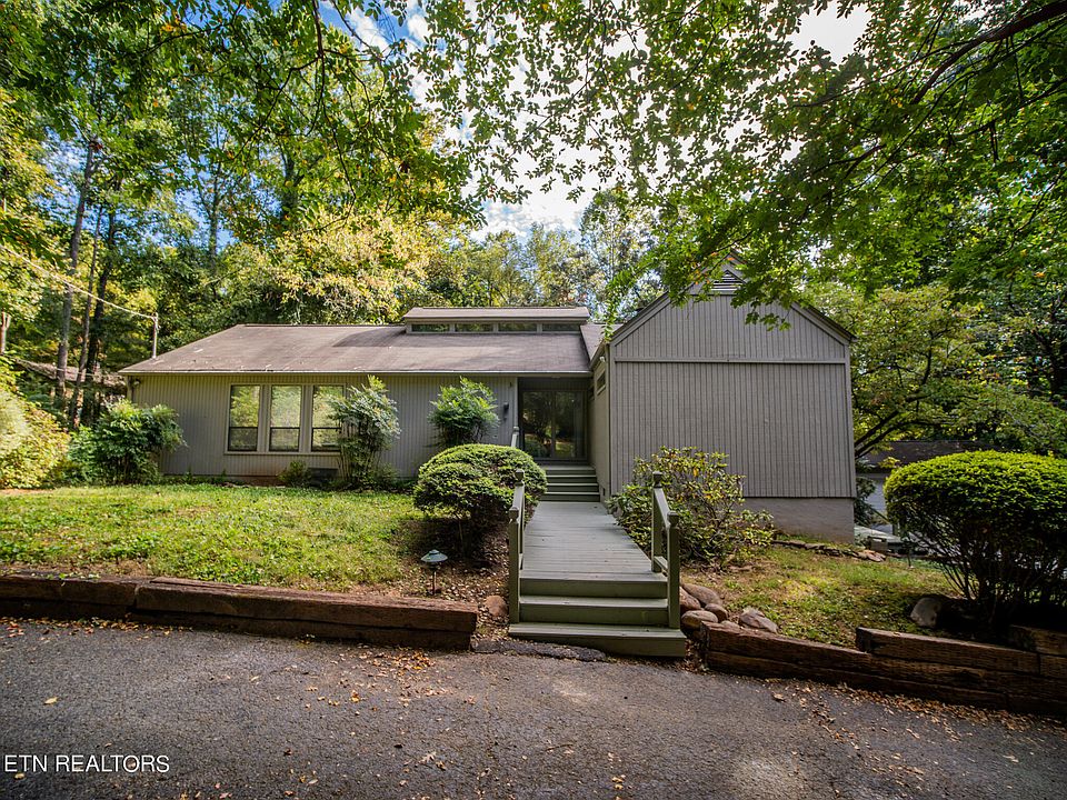 Perched Above Contemporary - This hard to find Mid-Century Modern vibe Basement Rancher is calling you home to Lakemoor Hills Subdivision. Perched above & tucked into the trees, you will feel the stress of your day release immediately as you enjoy your own piece of picturesque tranquility. Located on a Cul-De-Sac street with Easy Access to the Universities, Hospitals & Downtown, this location is highly desirable. New Hardwood Floors in Main Living Areas. Oversized Eat-In Kitchen with Butcher Block Island, Vaulted Ceiling, New Built-in Bookcases/Shelving, Pantry, & New Cooktop Range. Host a dinner party in the Formal Dining Room and continue the entertainment out on the adjoining Deck on those cool nights. The Living Room boasts of a Vaulted Ceiling, New Built-Ins, Fireplace, & lots of Natural Light. Owner's Ensuite with Double Closets. Ensuite Double Vanities & Tub/Shower Combo. 2 more Bedrooms & Full Bath finish out the main floor. Finished Walkout Basement can serve many uses for a Mother-in-Law suite, space for those who want to be more independent, Man-Cave or Entertainers Delight with Kitchen, Wine Storage Closet, Two Rec Areas, Eating Area & Bar seating. Bedroom, Full Bath, Office/Workout Room & Storage area finish out the lower level. Decks beyond Decks take in the beauty of this property. Extra Storage for all the outdoor things under the Detached 2 Car Garage. Circle Front Drive for guest parking. 15 minutes from the Knoxville airport and just minutes from the Tennessee River. Make Your Real Estate Dreams A Reality - Schedule Your Showing Today!