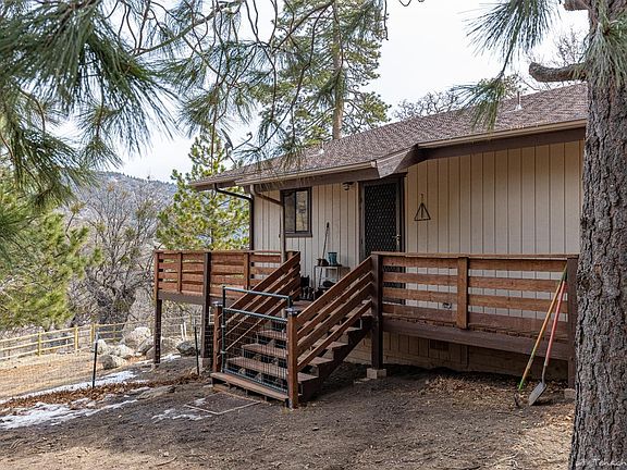 Come up to the peacefulness and beauty of Bear Valley Springs! This 2 bedroom 2 bath home is perfect for a part time or full time residence. Situated on over an acre of tree studded land, you will appreciate all that this mountain getaway has to offer! Stay warm with a cozy wood burning fireplace that heats the whole house Take in the beautiful surroundings on your brand new hem fir stain-treated deck. Home is all electric which eliminates costly propane bills. Exterior has recently been painted and new fencing installed. Bring your horses and other furry friends! Animal shed for smaller animals stays. Bear Valley's amenities include 2 lakes, golf, swimming pool, tennis, restaurant, recreation center, and plenty of hiking trails. Only virtual tours are allowed at this time.