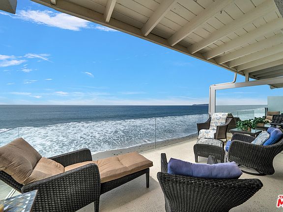 Rarely offered tenancy-in-common unit on Malibu Road in a special location - the last building on the street. Enjoy panoramic ocean views and the sound of the waves from this upper unit on one of Malibu's most coveted roads. With large expanses of sandy beach next to the building and direct steps from the courtyard to the sand in front, there is no better place to spend the summer. The unit itself features sliding glass doors that open from the living room with gas fireplace to a large balcony for a seamless flow. Enjoy the ocean view from the kitchen and dining area with built-in seating. The bedroom is tucked away and private with a built in office area, large closet and stacked washer and dryer. There is a one car garage with more additional space for another car behind the garage. The building has a common area courtyard and community laundry room as well. So special!