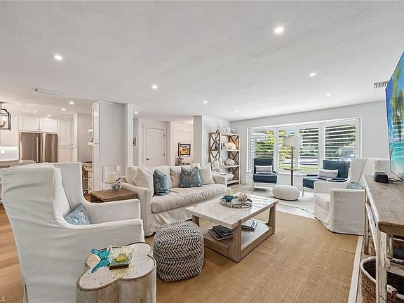Presenting this Old Naples-inspired coastal retreat on a tranquil cul-de-sac street in an incredible central location. Plus, the seller is open to offering a credit towards a pool! Boasting three bedrooms, two baths and a single-car garage, this fully remastered home offers a seamless blend of comfort and style with its beautiful finishes and furnishings throughout. Step inside to find elegant white oak flooring that flows gracefully through all bedrooms and living areas, enhancing the coastal ambiance. The heart of the home is the spectacular kitchen featuring an oversized island, elegant quartz countertops, premium appliances and ample storage, ideal for culinary adventures and entertaining guests. The owner’s suite is privately situated, featuring a beautifully appointed bath and walk-in closet, while both guest bedrooms offer ample space and a luxurious bath nearby. Outside, a spacious and private backyard beckons, offering western exposure, plenty of space for relaxation and potential for a pool. Enjoy year-round outdoor living on the charming screened lanai, ideal for morning coffee or evening gatherings with loved ones. In a desired X-zone, this home stayed high and dry during Hurricane Ian and is reinforced by impact-resistant windows and doors throughout. The powdery white beaches and famed shopping and dining of 5th Avenue, Venetian Village and Waterside Shops are less than 10 minutes from your doorstep. Embrace coastal serenity combined with modern convenience in this charming residence.