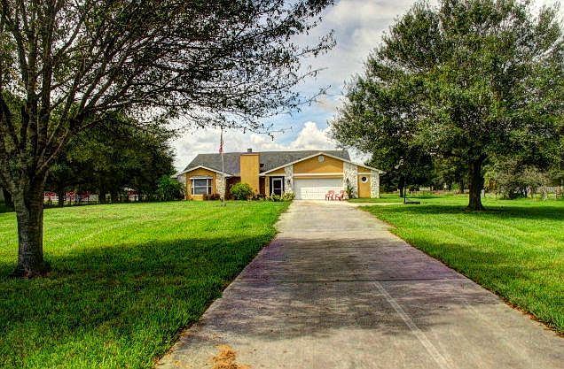 2.28 Acres of great country living. Lovely 3 bedroom 2 bath pool home. Tile throughout. Master bath re done. Master opens to screened porch. Open kitchen to great room and dining area. Two beautiful wood burning fireplaces. One in the Great Room and one in the Den. Den has a closet so it could be 4th bedroom. 3 skylights provide excellent savings on electric. Water softener and reverse osmosis at sink & ice maker. In ground non screened in pool adjoining the screened porch. Property is fenced and double fenced. Horses and animals allowed. You can even have a bonfire on those cold winter evenings out in the country while enjoying those beautiful sunsets. Zoned AG-2.5. Room sizes approximate. Sold ''As Is''.