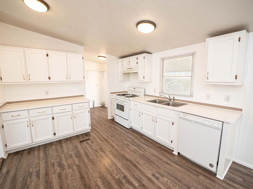 Check out this newly touched up home including 3 Bedrooms 2 Bathrooms plus a large EXTRA ROOM and laundry room! This space offers a backyard with included shed. This all-ages mobile home park offers a harmonious blend of natural beauty and amenities, ensuring a life of comfort and relaxation. Outdoors features an inviting pool and spa area, kids play structure, basketball court, barbecue area and large grass areas. Indoors, utilize the fully equipped kitchen, ideal for hosting gatherings and sharing meals with friends and neighbors. Experience the warmth of community in our spacious gathering hall.