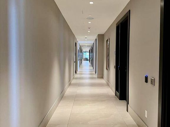 Open-concept layoutContemporary kitchenStone countertopsSleek backsplashBuilt-in appliancesExpansive windowsWest-facing balcony