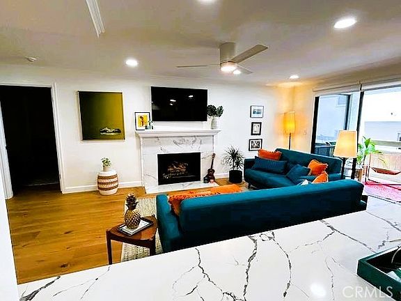 Welcome to the premier condominium community of Palos Verdes Estates! This beautifully remodeled, spacious corner unit offers two bedrooms, two bathrooms, plus a separate office—perfect for modern living. Step into the gourmet kitchen featuring stunning Carrera stone countertops, stainless steel appliances, and an impressive 10-foot island that seamlessly connects to a formal dining area—ideal for entertaining. Both bathrooms have been fully renovated with contemporary finishes, and the unit includes an in-unit laundry room for added convenience. Throughout the home, you'll find hardwood flooring, updated electrical, and stylish new lighting. Situated on the third floor as an end unit, this home offers serene views of trees and hills. Additional features include two side-by-side covered subterranean parking spaces, complete with extra storage. The entire unit was recently repainted, with new flooring and window coverings installed throughout. EV owners will appreciate the option to install an electric vehicle charger at their own expense. Located just one block from Malaga Cove Plaza and within walking distance to local beaches and the charming Hollywood Riviera shops, this home also offers quick access to the 405 and 110 freeways—just a 15-minute drive away. Don’t miss the opportunity to own this elegant and ideally located coastal retreat.