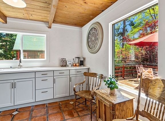 Nestled in an ideal location in Idyllwild's Fern Valley, this home is the perfect escape from the hustle and bustle of city life. Enjoy close proximity to both trailheads and local downtown area with award winning restaurants and unique shops. The unique outdoor spaces offer stunning views, hot tub, grill, lookout tower and beautiful redwood deck spaces. The home is set up as a 3 bedroom with a playroom/game room, but can easily be turned into a 4 bedroom. Our kitchen was just renovated and features newer appliances. Laundry room, Parking for 3 cars in the large driveway, and plenty of space to enjoy the outdoors, this home has it all!