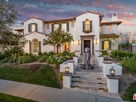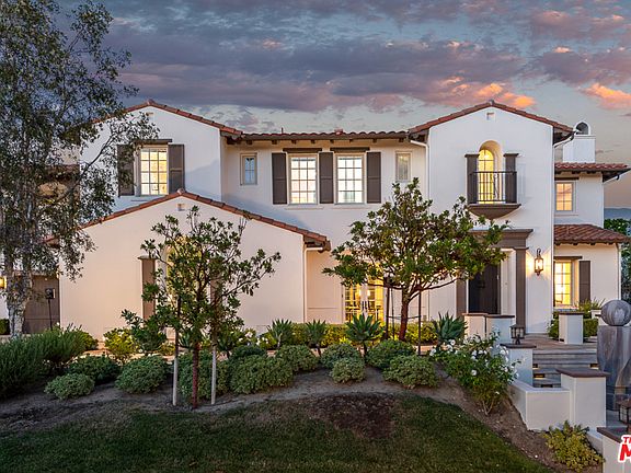 This Magnificent Trophy Estate with breathtaking views is located on a premier street in The Exclusive 24 hour guard gated Oaks Of Calabasas. This One-Of-A Kind Home features Modern Chic Flooring throughout both levels including Marble Herringbone and a gorgeous formal checkered entry. This home offers, state-of-the-art Home Movie theatre, Private office, Elegant Formal Dining & Living rooms & a romantic outdoor central courtyard with fireplace. Gourmet kitchen has La Cornue Range, Custom Cabinetry, & sun filled breakfast area.The master retreat has a separate sitting area, expanded walk-in shower, vanities, remodeled wardrobe closet and a balcony with endless views. The secondary bedrooms feature a additional master suite (combining 2 former bedrooms). The inviting oasis-like backyard is perfect for todays indoor/outdoor California Living and includes a sparkling pool & spa, full BBQ center with bar and serving area.