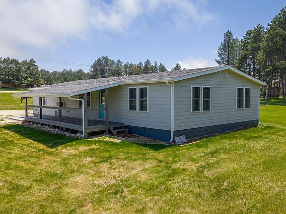 Easy One-Level Living with Stunning Views and Small Acreage—Yes, You Can Have Chickens! This beautifully updated manufactured home offers the ideal blend of comfort, functionality, and location—framed by sweeping views of the Needles and Cathedral Spires right from your doorstep. Inside, enjoy main-level living with thoughtful upgrades already completed by previous owners, including newer windows, roof, siding, gutters, downspouts, PEX plumbing, water heater, and pressure tank. Step outside to enjoy newer concrete work, updated deck railings and stairs, and not one—but two—covered outdoor areas. The spacious 30'x8' front deck is perfect for morning coffee or evening relaxation, while the rear patio offers the ideal spot to grill and dine al fresco. The 24'x40' detached garage is a major highlight, featuring a 16'x40' lean-to, chicken run, workshop area, its own electrical panel with 50-amp service, and a 30-amp RV hookup. Underground power adds even more convenience. Best of all? There are no covenants—and you’ll enjoy direct access to USFS land from your backyard (almost 400 acres), giving you unmatched privacy, recreation, and freedom. This is right-sized living with the right views in the right location. Don’t miss your chance to make it yours!