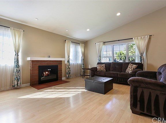 JUST FELL OUT OF ESCROW SELLER MOTIVATED Enter this well cared for family home to Large living room with vaulted ceilings and cozy fireplace add laminate wood like flooring which continues down the hallway to master suite in which the bath has raised soaking tub and shower. There is a door that leads to a romantic stone fire ring and bench . Or back to the living room and go to your left and you will be in the family-room kitchen combo. Countertops & flooring are upgraded Go through the glass slider to covered patio making it easy for those summer BBQ parties. Laundry area located in the attached garage This home is close to 2 parks Has new paint completed on interior. Fresh and ready for the homes next owners