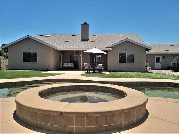 Wow, the panoramic views from this beautifully maintained single level 3 bedroom - 2 full baths 2221 sq. ft. home are beautiful and breathtaking! If your clients are looking for space and views, this is the home! This house has a wonderful open floor plan with wood vinyl plank flooring throughout and the home has a new roof that was put on in 2021 and Solar was added in 2018 which is OWNED! Walk out onto the back covered patio and there is a pebble tech pool and spa overlooking the property and views. The 4 acres are flat and usable and offer many amenities, including a Mare Motel with new lighting & wiring, paddocks, pipe corrals, 3 out buildings and plenty of room to add an ADU or shop!