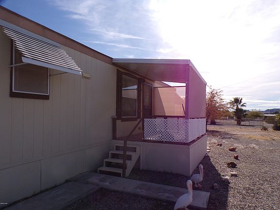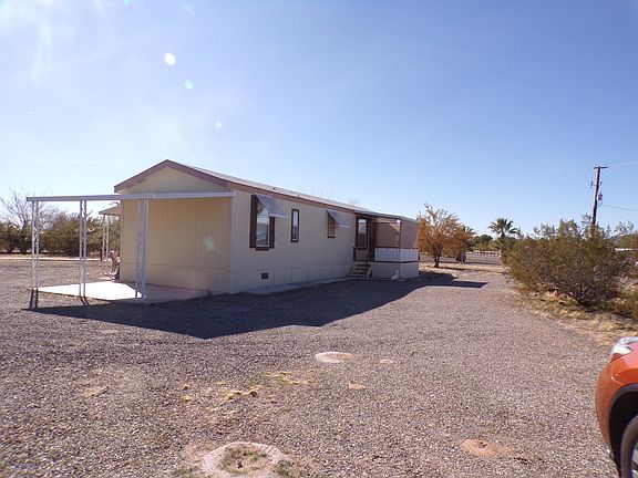 Brandy Hills East, CORNER LOT, 1.26 acres has 3 double gated entries, with mexican brick wall. Graveled circular drive allows easy access. This home is furnished,couches, beds,dressers,nite stands,lamps refer,washer,freezer& much more.This very clean 2006, 2 bed, 2 bath manufactured home has large living area with ceiling fan, open floor plan, easy transition into a nice sized kitchen that contains, beautiful laminated counter tops, nice sleek cabinets, lot of cabinets for storage. Stainless steel sink, refer, microwave, stove an island in middle. Nice lighting helps you see, both bedrooms have ceiling fans,bathrooms and bedrooms, are both comfy sized. Exterior of home has, 2-10x16 carports. The 8x12 TREX covered, front deck has a sunscreen, SWEEET for watching sunsets. A covered 20x10 brick layed back patio is perfect for relaxing. A 24x32 metal shop has 110 and water. Shop has roll up door and man door. Fire pit area to marshmellow roast and enjoy friends. 4 Fruit trees 2- TANGELO,1-GRAPEFRUIT,1- NAVEL ORANGE. Plenty of room for friends and their rigs. The lot has mature desert landscaping on watering system, THIS IS A MUST SEE.. Call to make appointment today.