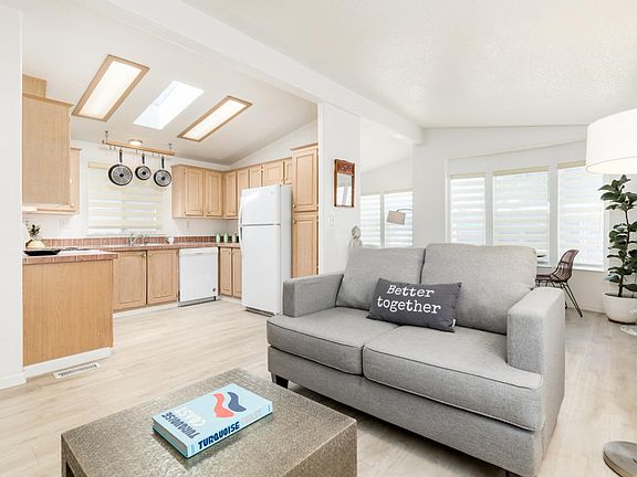 Welcome to upper Pine Knolls, all age park with a coveted corner lot, private yard, sunny succulent garden, covered parking, and extra storage. The interior of this home is bright and open with vaulted ceilings, soft light filtering blinds, skylights, interior laundry, wood fireplace, new floors, fresh exterior paint, new fence, new lights, and more. The primary suite has a large closet and nicely updated bathroom. You will find all your needs and desires within 5-7 minutes of this beautifully maintained home. Close to Sunny Cove and Twin Lakes Beaches, Simpkins Swim Center, Brommer County Park, Pleasure Point, Santa Cruz Harbor, the Capitola Mall, Trader Joe's, Whole Foods, Movies, Dining, and Coffee Houses.
