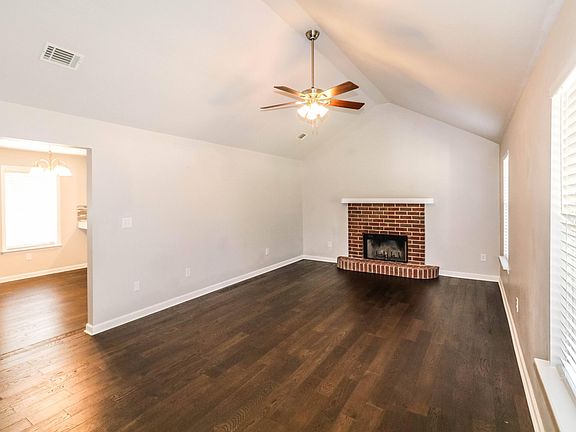 Move-in ready 3bd/2ba brick home, located in popular Woodlake subdivision with all laminate floors, no carpet! Updated throughout, vaulted ceiling in the living room with wood-burning fireplace. Spacious kitchen boasts ample counter space, backsplash, and cabinet storage! Dishwasher, electric range, vent hood, microwave and refrigerator. Owner suite also with vaulted ceiling, updated vanity and walk-in closet. Separate laundry room with extra shelving. Large, fenced-in backyard! Back deck and out building remains. Other features include: rocking chair front porch, coat closet and linen closet, blinds throughout and ceiling fans in all bedrooms. Convenient location to the neighborhood park, shopping, restaurants, Fort Eisenhower, and more!