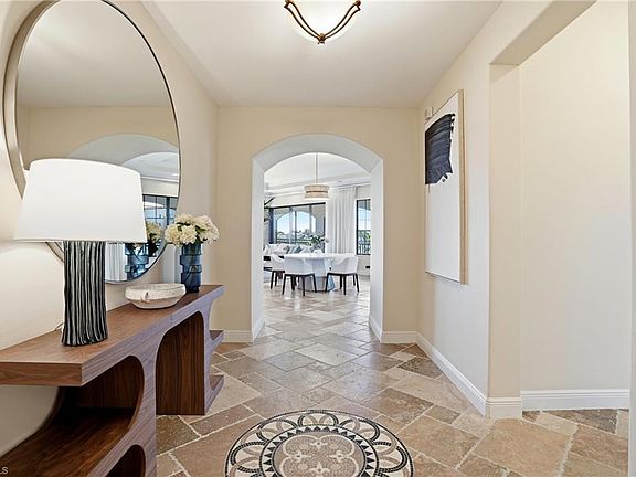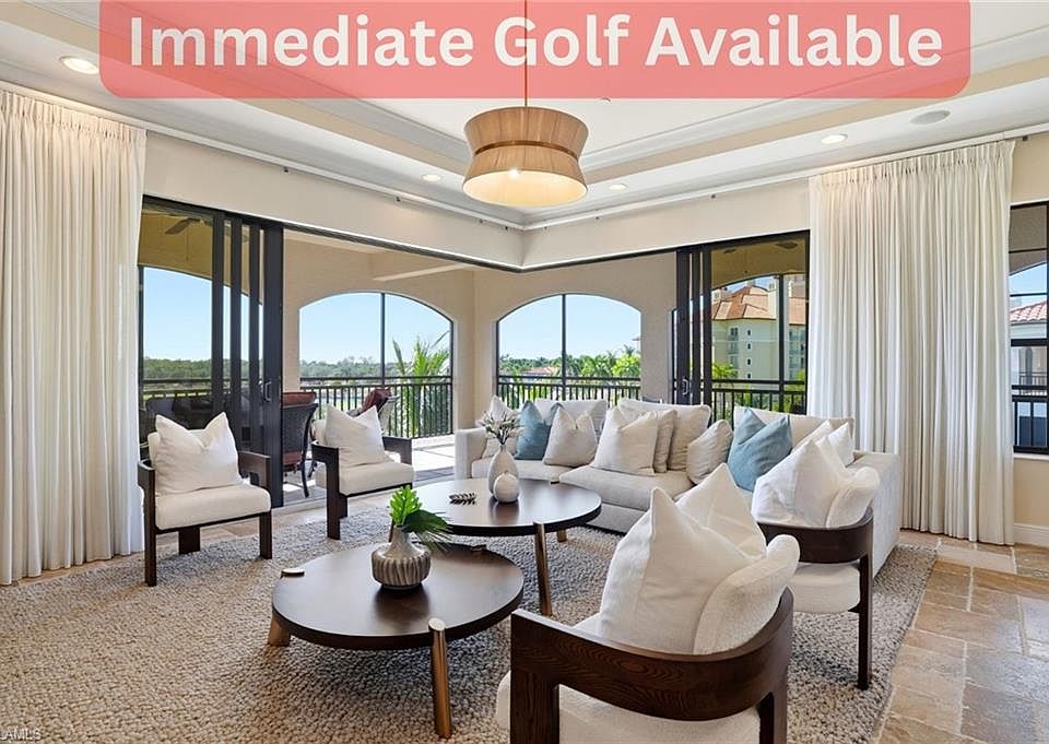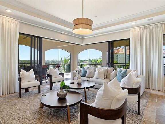 Experience luxury living in this impressive Marquesa Royale penthouse in Tiburon. Situated on the 18th hole of one of two prestigious Greg Norman designed golf courses, this impeccably decorated residence features natural earth tones while offering spacious elegance with breathtaking views. With airy modern design and livable sophistication, key features include 10’5” high ceilings, 2 walls of zero-slider doors that open to an expansive wrap-around lanai, perfect for enjoying the scenic surroundings, lush green views, and Florida sunshine. The versatile 2+den split floor plan includes three full bathrooms where the den can easily serve as a third bedroom, ideal for family and guests. If you like to cook and entertain, you will appreciate the gas cooktop, spacious open kitchen, bar area with wine fridges, and multiple areas to dine and enjoy the views. Convenient elevator access directly to your unit ensures ease of living, while two parking spaces in the garage provide ample, secure parking. Marquesa Royale is a gated, secure community located in Tiburon offering privacy and peace of mind to come and go. This exceptional property includes the opportunity to immediately join the golf club for an active lifestyle in one of Naples’ most sought-after resorts. Home to the Naples Winter Wine Festival, PGA and LPGA golf tournaments, and incredible events and amenities at the Ritz Carlton Golf Resort, Tiburón is designated as a Certified Audubon Cooperative Sanctuary right in your own backyard. Don’t miss your chance to make this luxurious penthouse your new home!