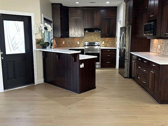 Designed with both function and family fun in mind, this exceptional home offers an ideal blend of comfort, space, and style. Featuring a sunroom, mudroom, over 550 sq. ft. of outdoor decking, and a second-level theatre room with a zoned sound system, it's ready for that special family to move in and make memories. With 4 spacious bedrooms and 4 bathrooms, this home offers plenty of room to grow. Enjoy the convenience of two family rooms, a heated double-car garage, and an extra-large front driveway—perfect for gatherings or multi-vehicle households. Comfort and quality are evident throughout with a high-efficiency furnace, in-floor heating in the ensuite and lower-level bathroom, and thoughtful extras like underground sprinklers and a gas BBQ hookup. All new quartz through out the home with brand new undermount sinks, new faucet in the kitchen. New flooring on main level and by second kitchen on the lower level. Whether you're relaxing in the theatre room, entertaining on the deck, or enjoying quiet mornings in the sunroom, this home delivers in every way. Easy to show and ready to impress!